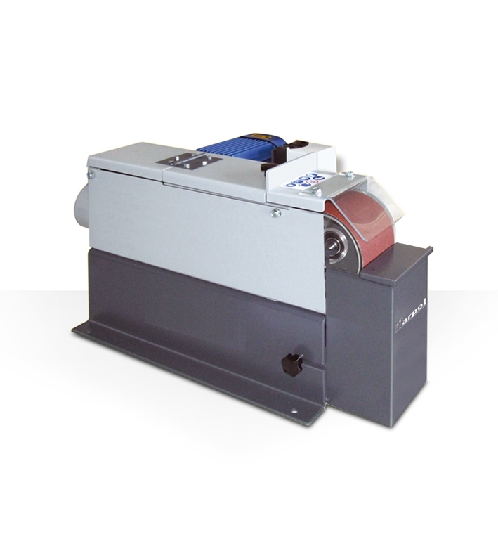 Levigatrice a nastro da banco per la lavorazione a secco di materiali metallici, legno e materie plastiche (con l’adozione di opportuni nastri abrasivi).