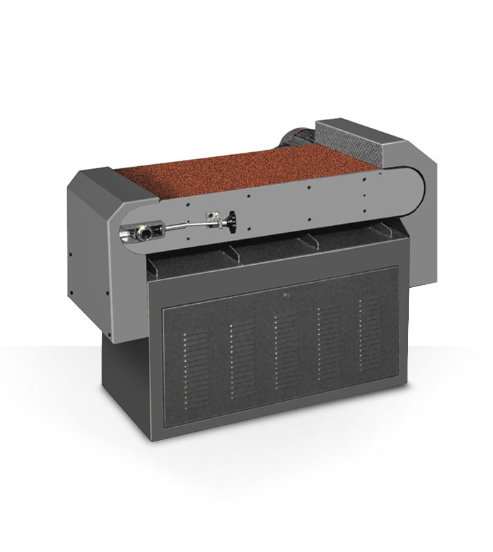 Levigatrice orizzontale a nastro per la lavorazione a secco di materiali metallici, legno e materie plastiche (con l’adozione di opportuni nastri abrasivi).