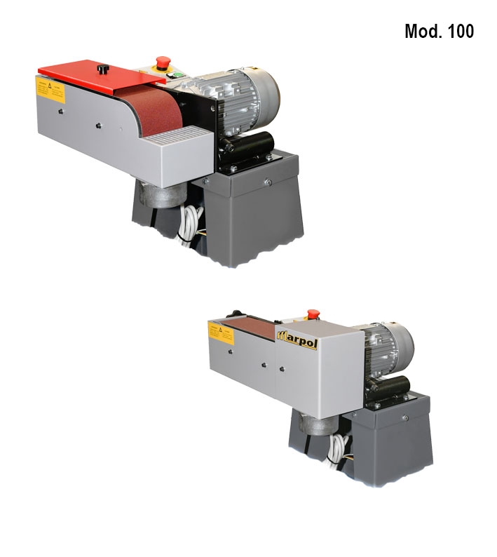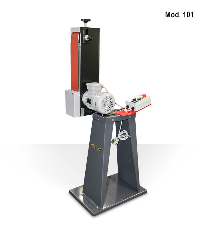 Levigatrici con nastro orientabile per la lavorazione a secco di materiali metallici, legno e materie plastiche (con l’adozione di opportuni nastri abrasivi). Versione con basamento o da banco.