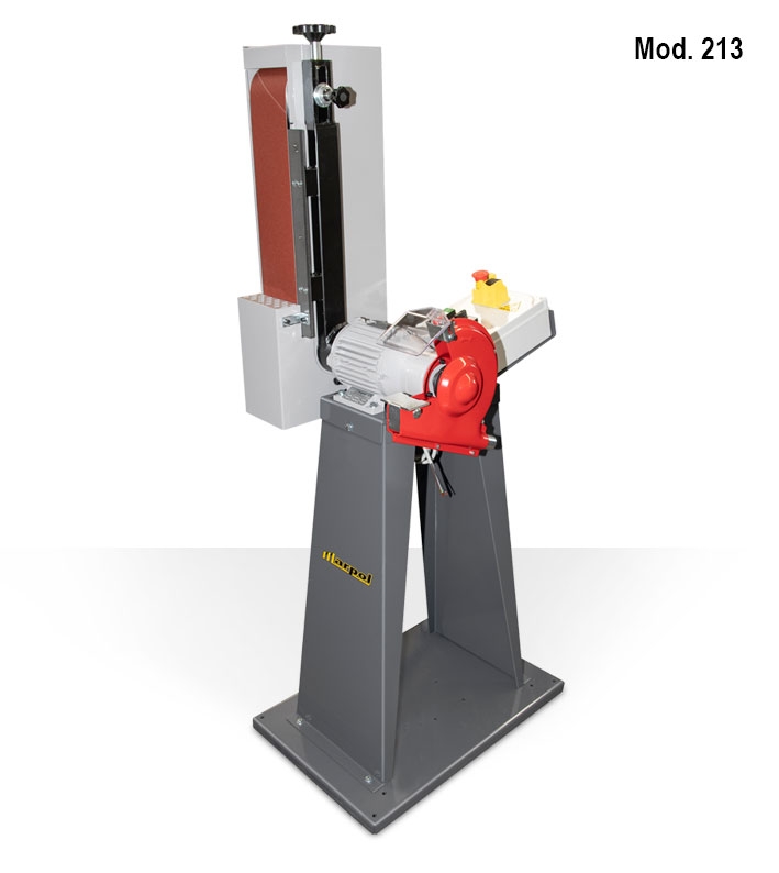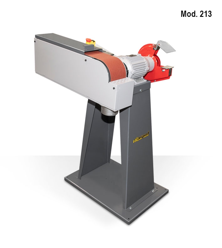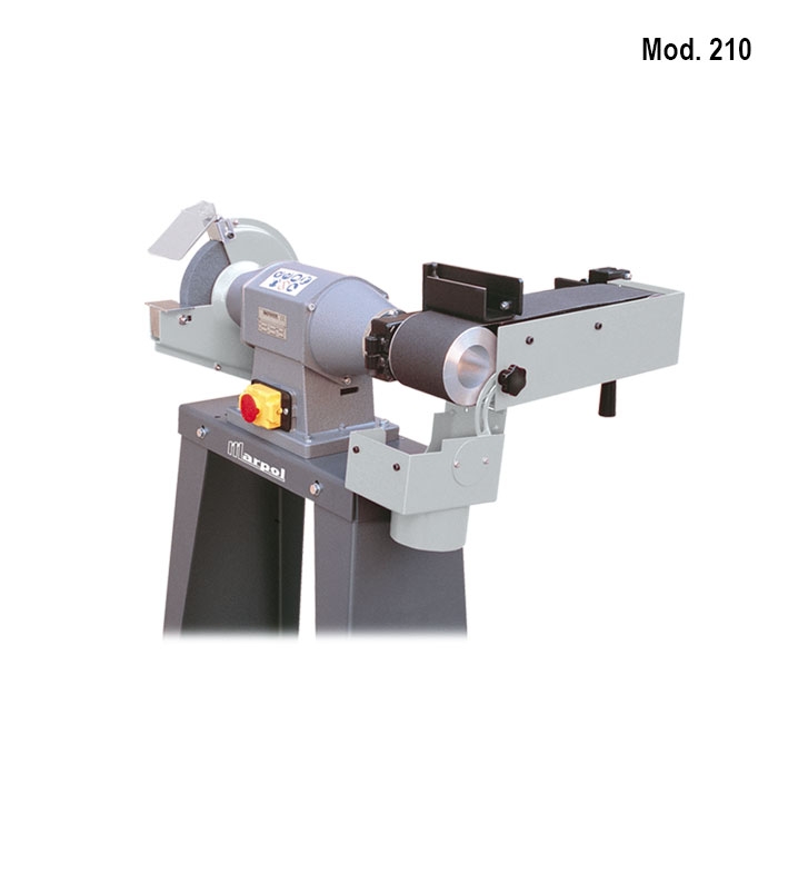 Macchina combinata: Levigatrice orientabile e mola per la lavorazione a secco di materiali metallici, legno e materie plastiche.