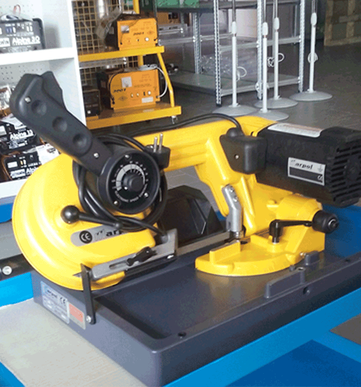 Una lama che gira su due pulegge in modo uniforme e continuo. In pratica una lama di lunghezza infinita che taglia solo per un brevissimo del suo tratto per tornare allo stesso punto per “enne” volte, contribuendo a tagliare in modo uniforme e regolare un profilato, una barra o un tubo solido, un particolare, grazie ad un carico distribuito.
